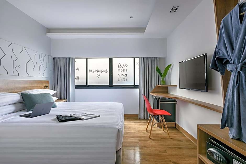 Standard is 237 square feet and includes either a king-size bed 150-183 width or a single bed 80-130 width plus satellite tv , hairdryer, safe, and bathrobes.